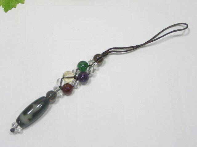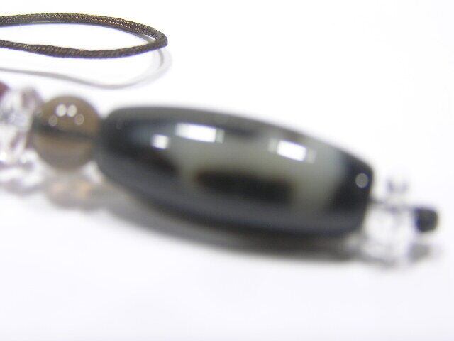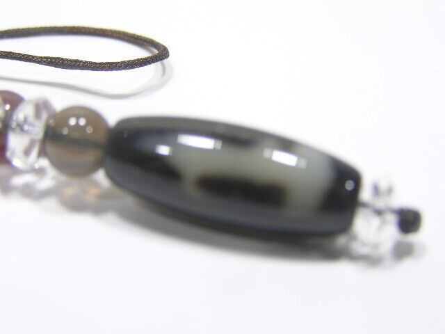 観音天珠 とパワーストーンのストラップ(根付)・瑪瑙・A140730-17
