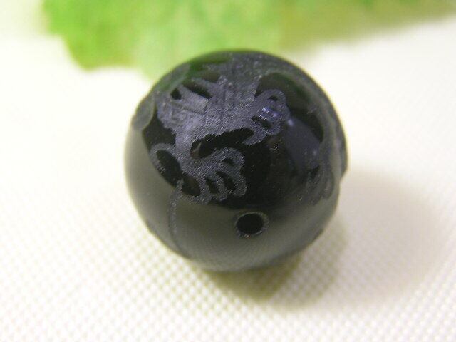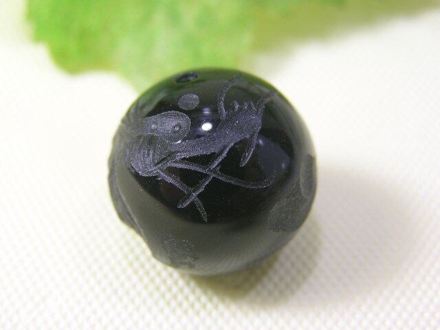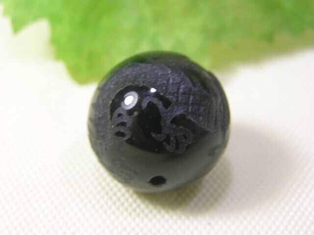 オニキスに皇帝の龍(五本爪) 彫刻 の穴あき丸玉 魔除け 開運招福 260102-4