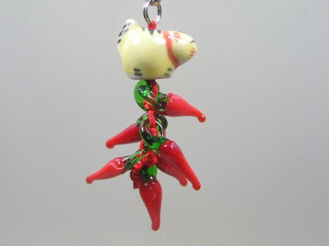 干支 寅 唐辛子付きの開運根付 (ストラップ)