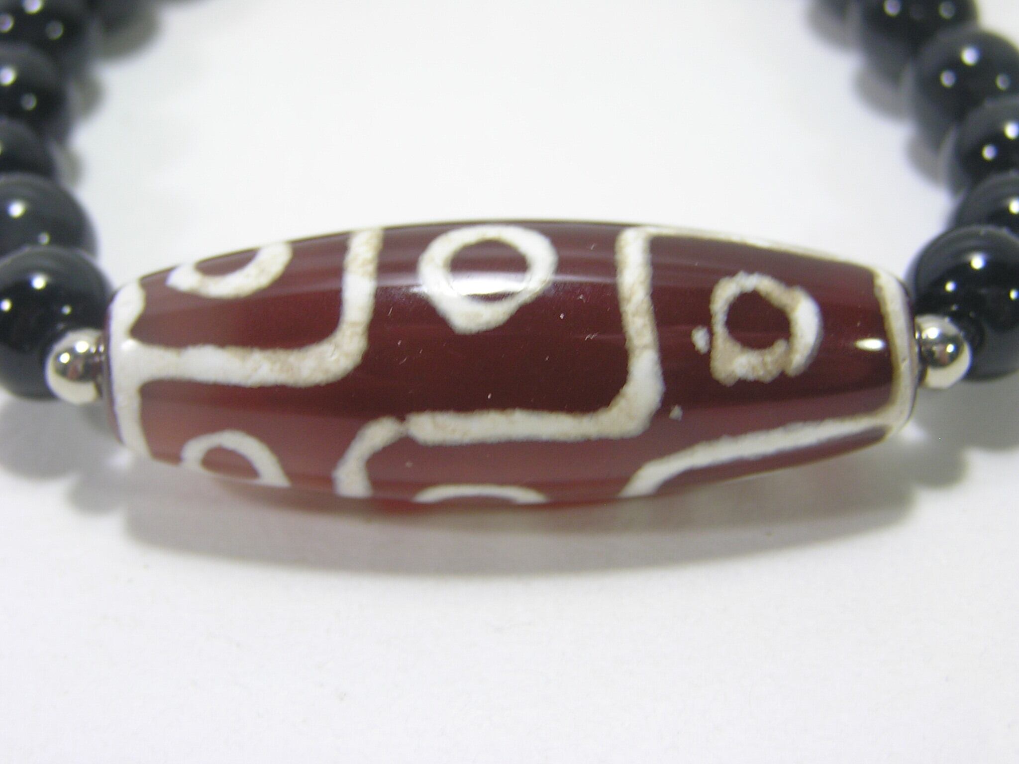 チベット天珠 ・九眼天珠(紅玉髄)とオニキスのブレスレット