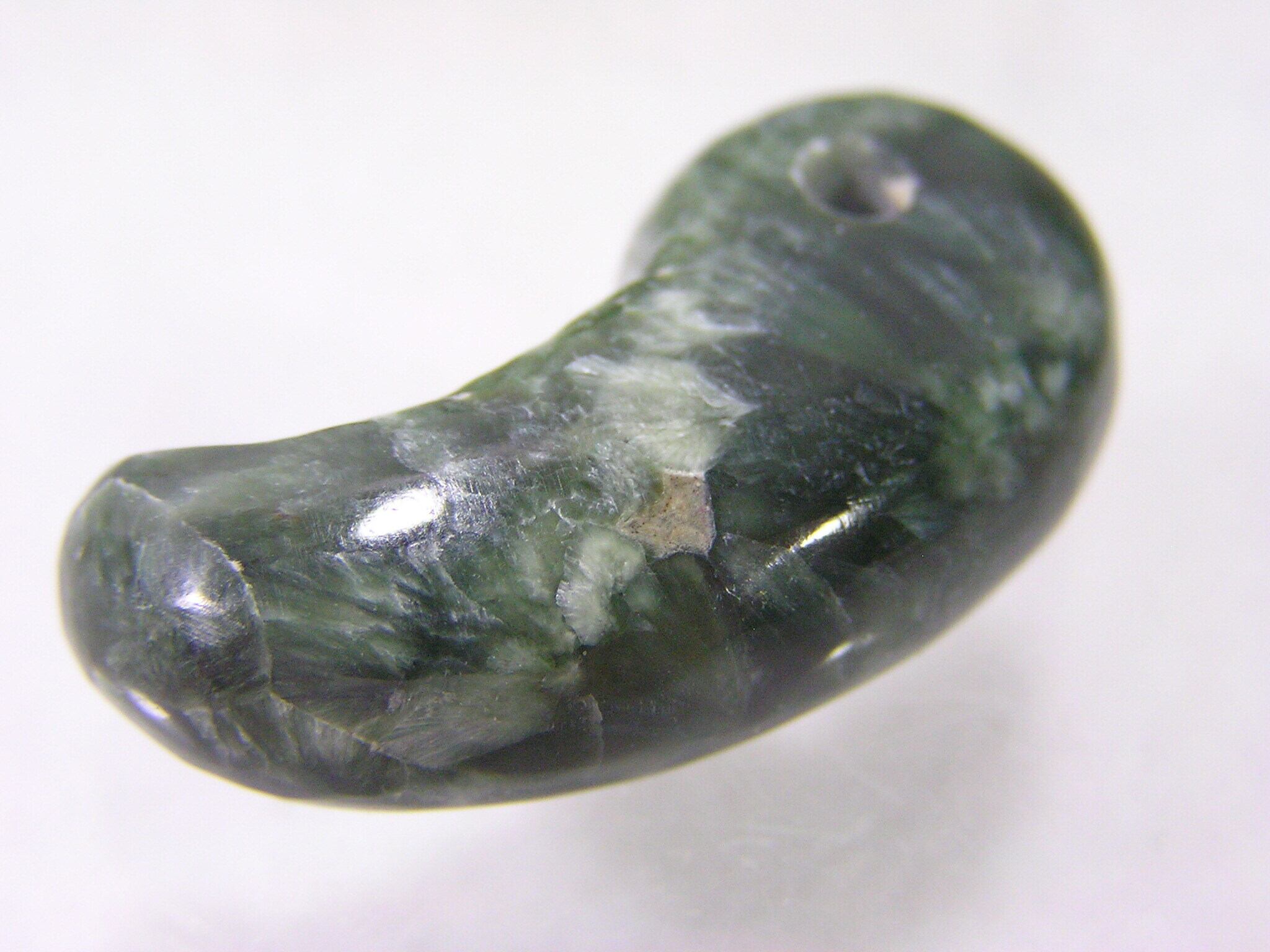 セラフィナイトの美しいグリーンカラーが魅力的な勾玉。天然石や原石、パワーストーンとしても注目されるクリスタルです。