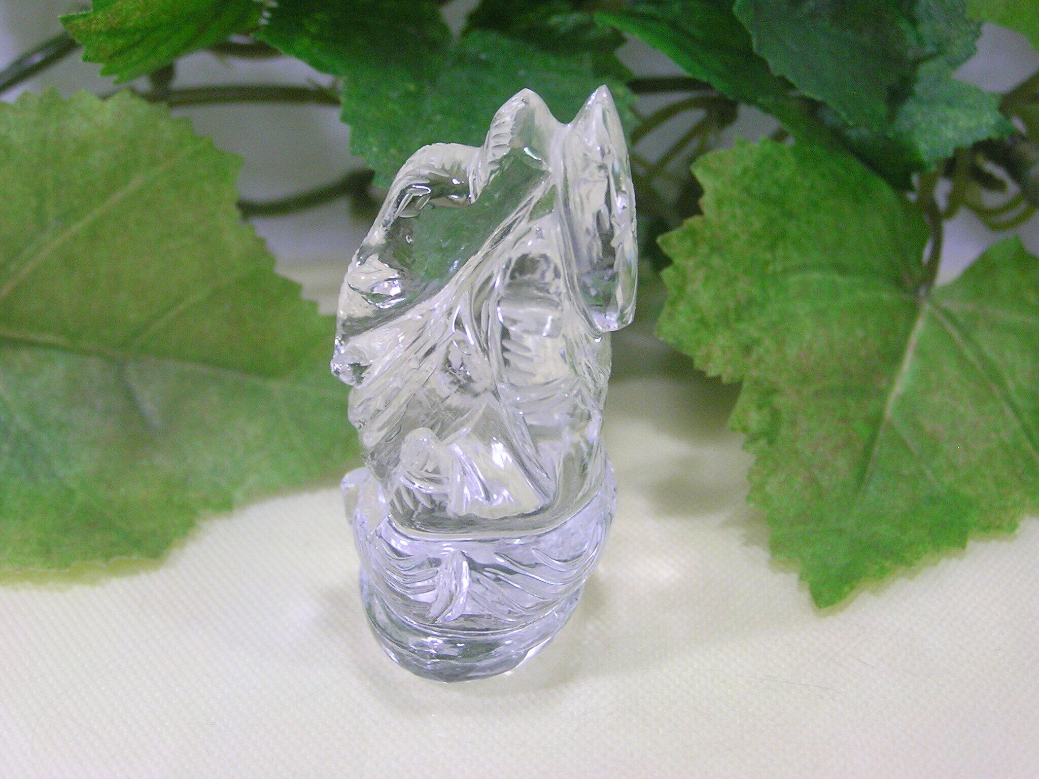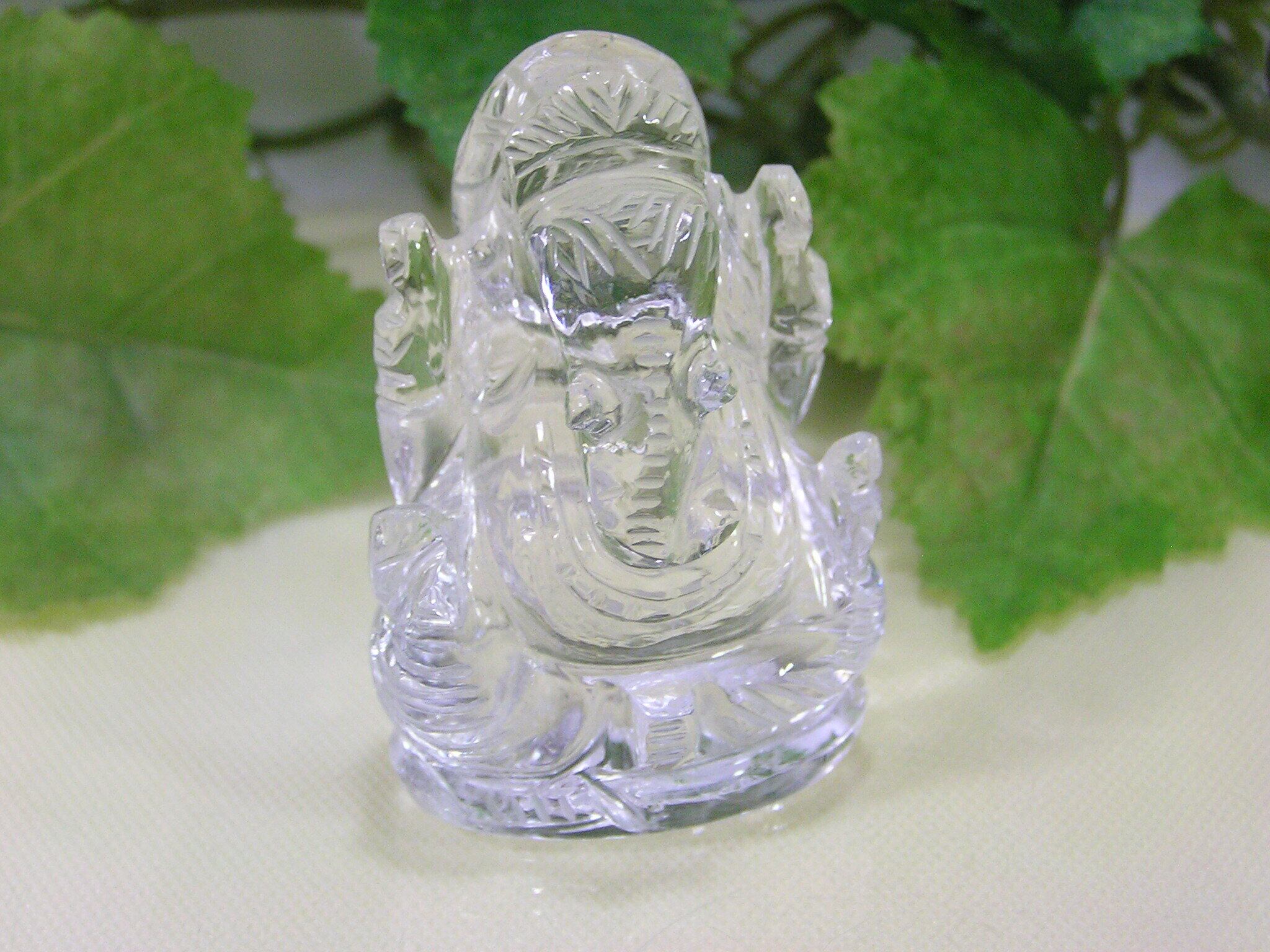 ガネーシャ彫刻(ヒマラヤ水晶)は、天然石でできた仏像の置物です。ガネーシャは、知恵や幸運の象徴として広く知られており、クリスタルの透明感と美しい彫刻が相まって、パワフルなエネルギーを感じることができます。