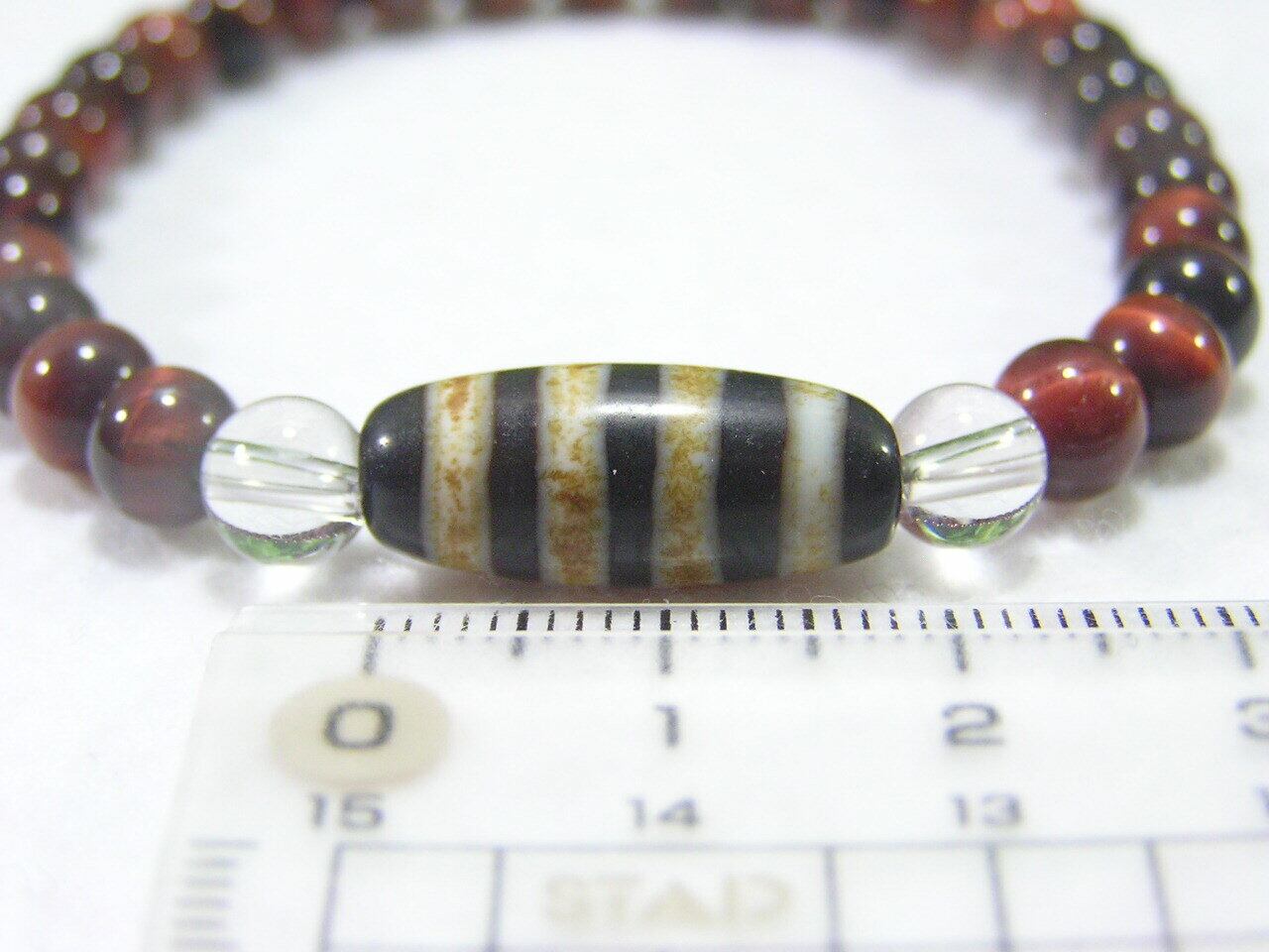 線珠(せんじゅ)ブレスレット 瑪瑙・チベット天珠 赤トラメ 水晶 開運 厄除け 231107-26