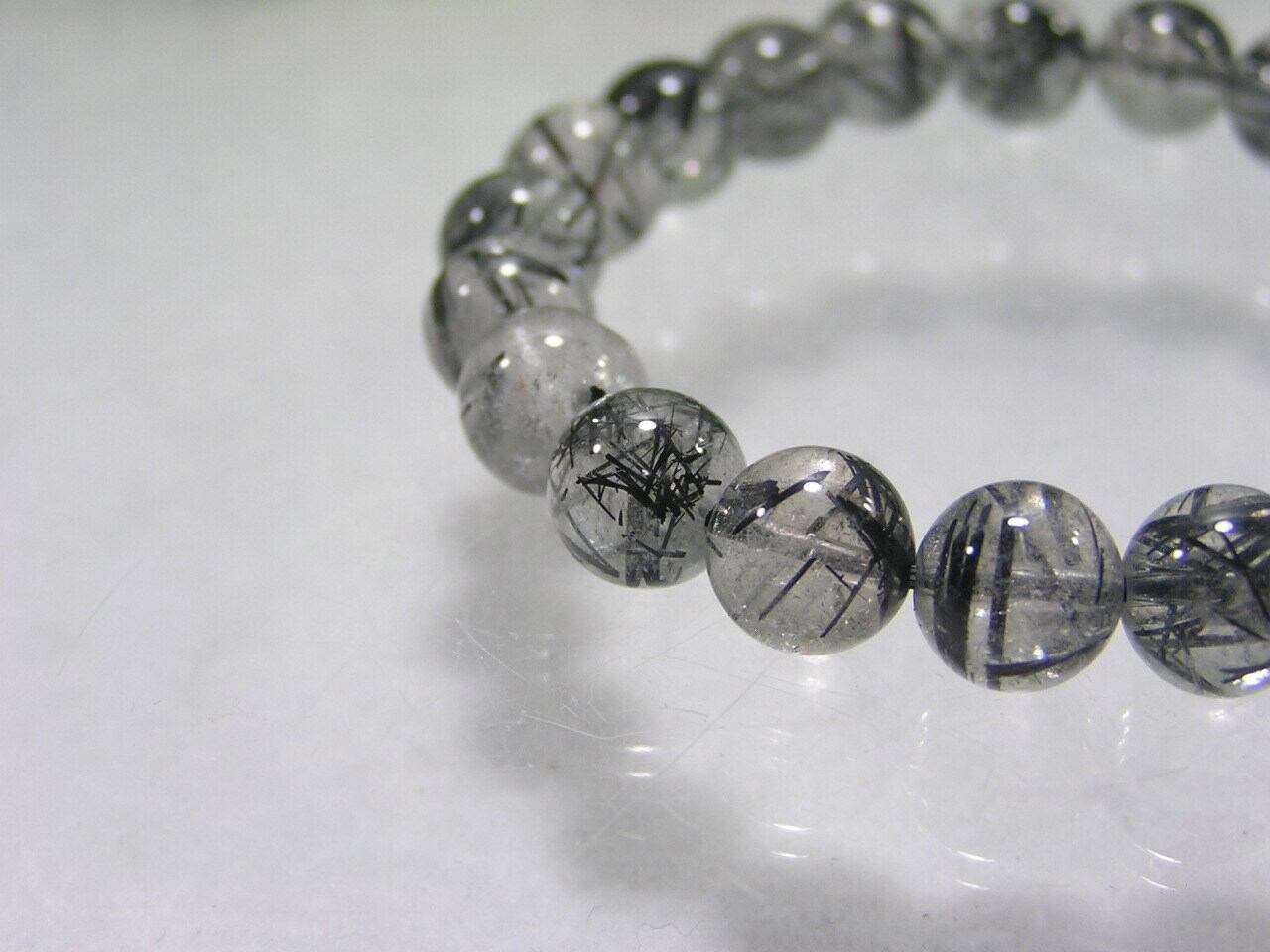 ブラック ルチルクォーツ 丸玉ブレスレット・原石・クリスタル A140906-18