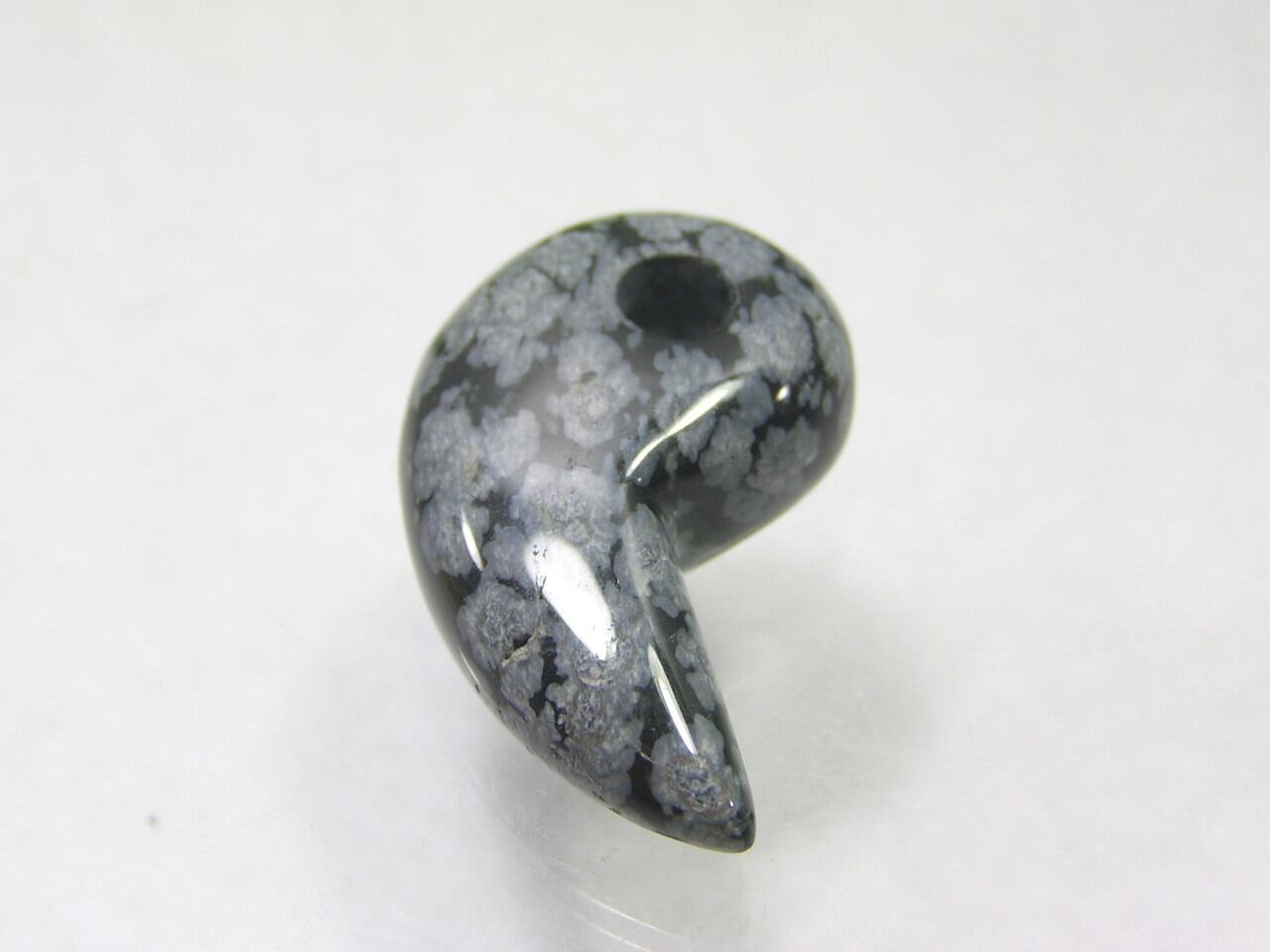 スノーフレークオブシディアン(黒耀石)勾玉 天然石 原石 魔除け 厄除け パワーストーン A140712-4