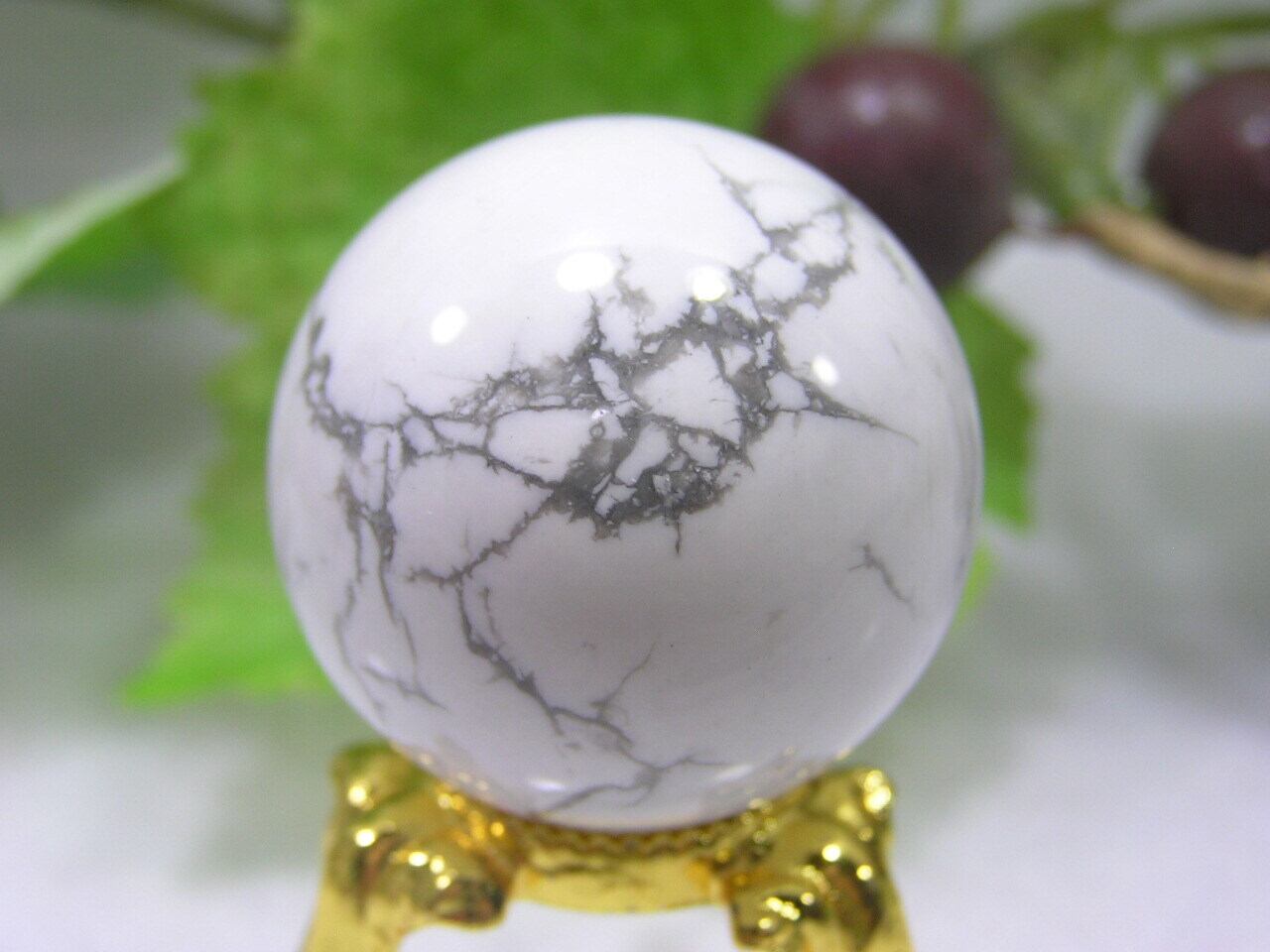 ホワイトハウライトトルコ 丸玉 天然石 パワーストーン 魔除け 厄除け スフィア A140718-7
