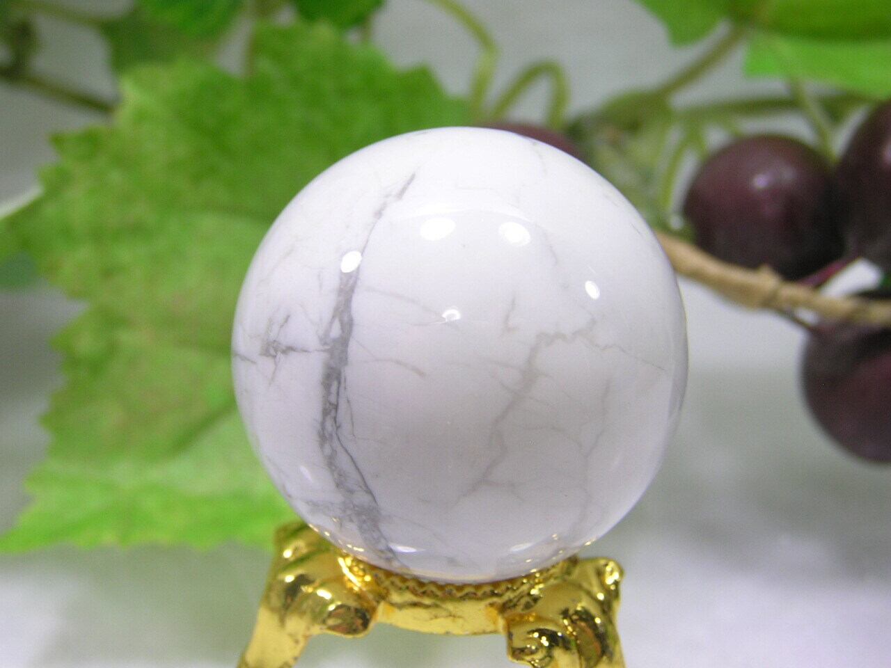 ホワイトハウライトトルコ 丸玉 天然石 パワーストーン 魔除け 厄除け スフィア 原石 A140718-8
