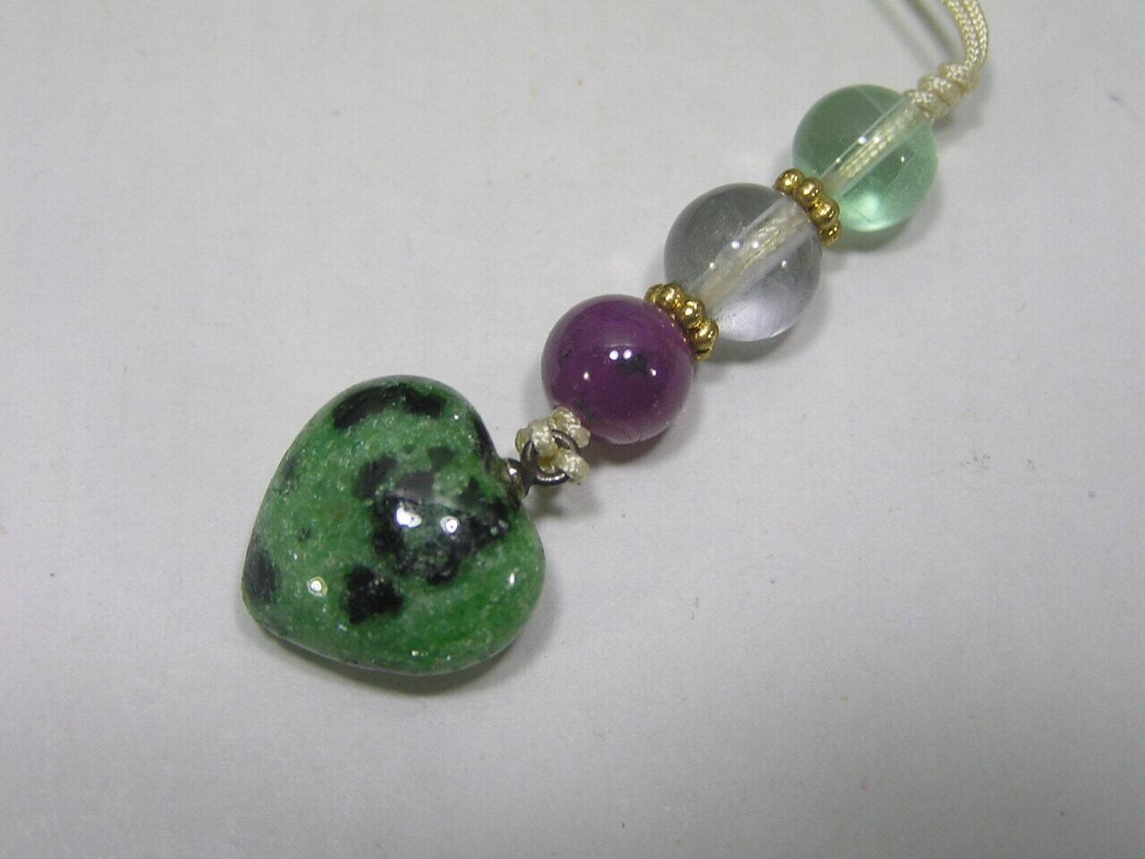 ルビーインゾイサイト ハート型 ストラップ 原石 天然石 パワーストーン A140730-25