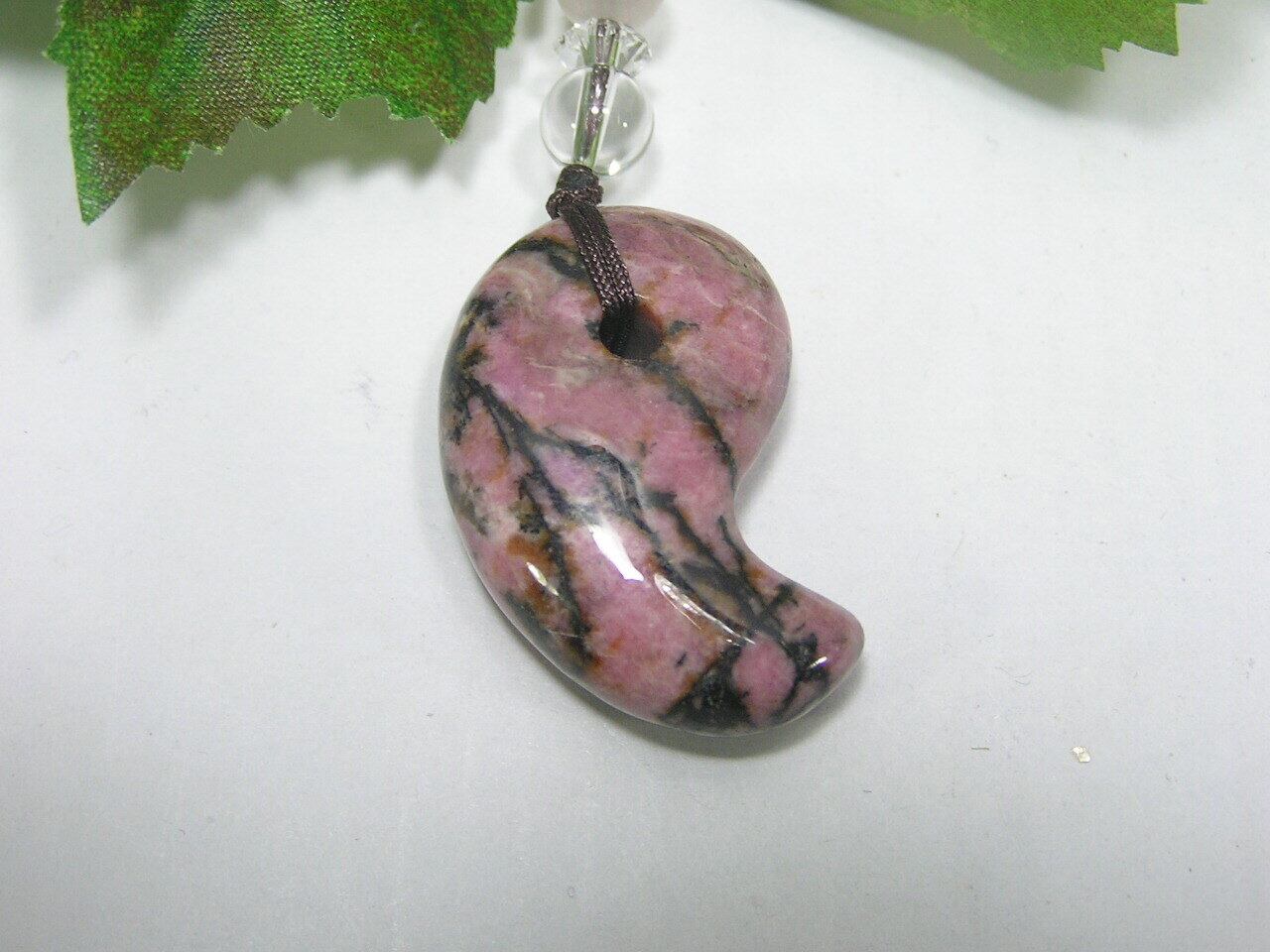 ロードナイト(バラ輝石)の勾玉 ストラップ 天然石 タンブル パワースト―ン 原石 A140730-22