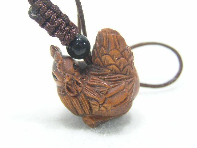 開運招福 木彫りの 干支 酉の根付
