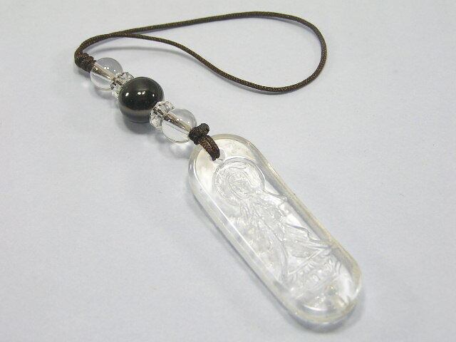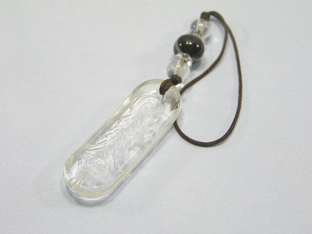 観音彫刻 水晶の根付(ストラップ)魔除け 厄除け 幸福のお守り パワーストーン200711-6