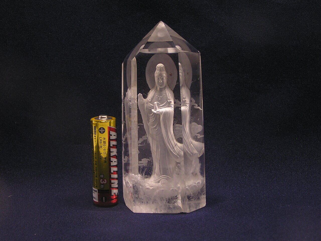 天然水晶 観世音菩薩像ポイント型・金運アップ・財運アップ・開運 Y150713-7