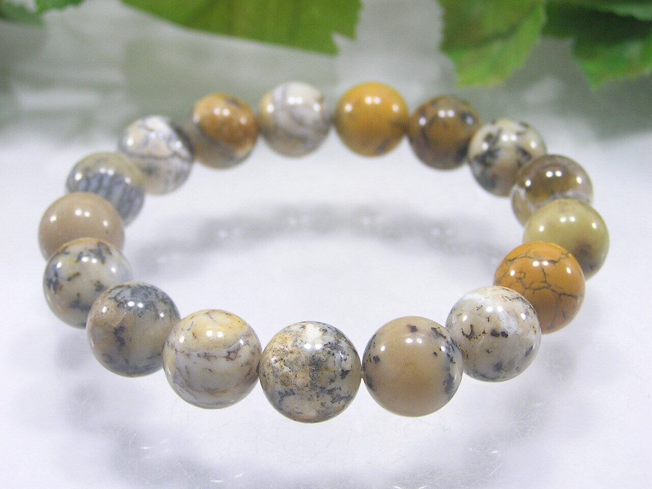 デンドリチックオパール 12.5㎜ 丸玉 ブレスレット 天然石 パワーストーン 240802-11