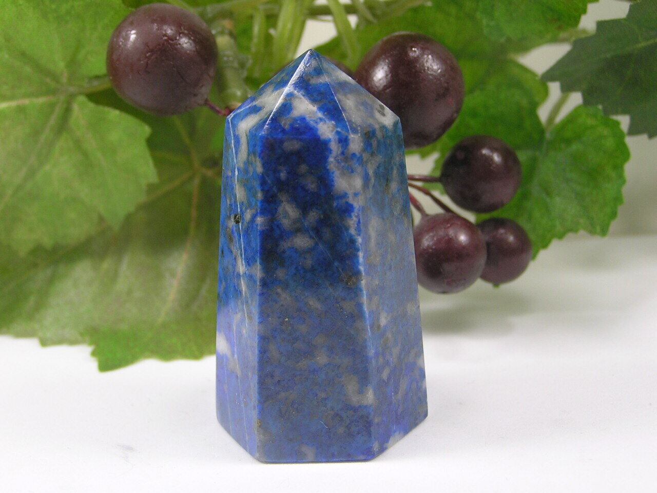 瑠璃の輝きを持つ、ラピスラズリのポイントです。この美しい石は、古代エジプトでは王たちも愛用したと言われています。ラピスラズリは「幸運」「魔除け」「開運」の象徴とされ、ポジティブなエネルギーを持つパワーストーンとして人気です。