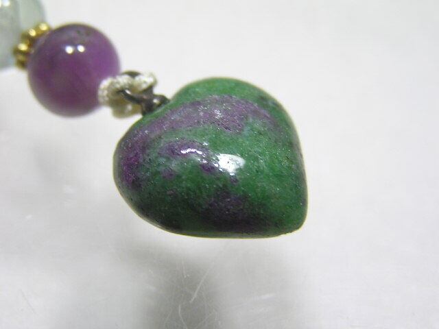 ルビーインゾイサイト ハート型 ストラップ 原石 天然石 パワーストーン Y160621-4